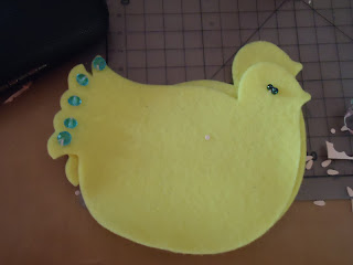 Next up is my other project I am at - the Easter chick....I decided to make some cute felt chicks for my daughter, mom, my brothers family and some other people who are dear to me - put it in the envelope with the Easter card....it is quite a lot of work but I really like to make them....here is one for show.....one side...